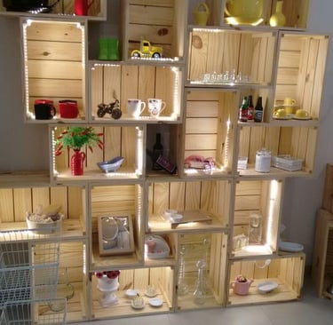 Os caixotes de madeira, que muitas vezes são descartados, podem ser reaproveitados como estantes, nichos ou organizadores para diversos ambientes da casa. Basta lixar, pintar ou envernizar para dar um toque especial ao móvel.