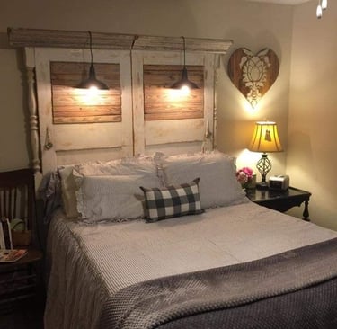 9. Portas e Janelas Antigas como Cabeceira de Cama ou Painel Decorativo