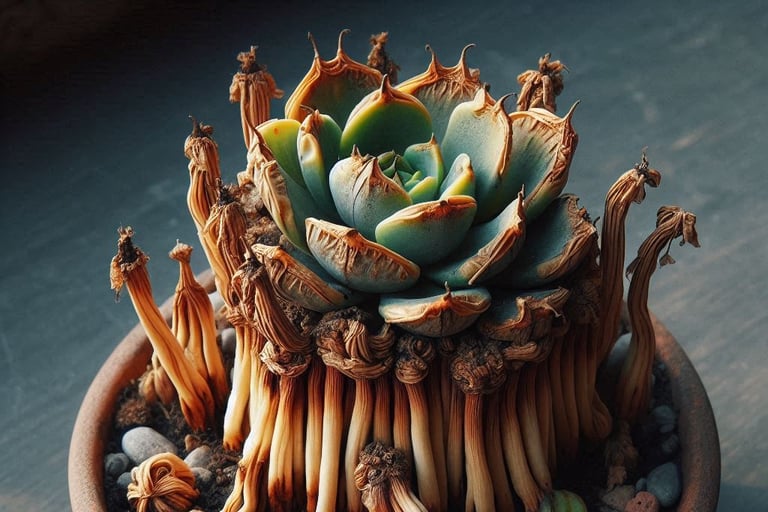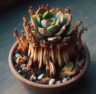 Plantas que acumulam água em seus caules, como suculentas, podem sofrer apodrecimento quando regadas em excesso. Se notar um caule amolecido ou folhas caindo com facilidade, é essencial reduzir a frequência de regas e melhorar a drenagem do vaso.