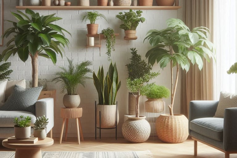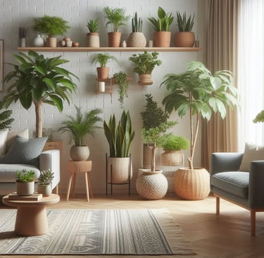 Plantas, madeira e elementos naturais não só embelezam o ambiente, mas também ajudam a criar uma atmosfera de tranquilidade e bem-estar. Elas adicionam cor e frescor ao espaço, tornando a casa mais acolhedora.
