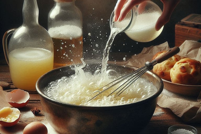 Coloque o bicarbonato aos poucos, mexendo com cuidado para evitar que a mistura espume em excesso devido à ocorrência de vinagre.